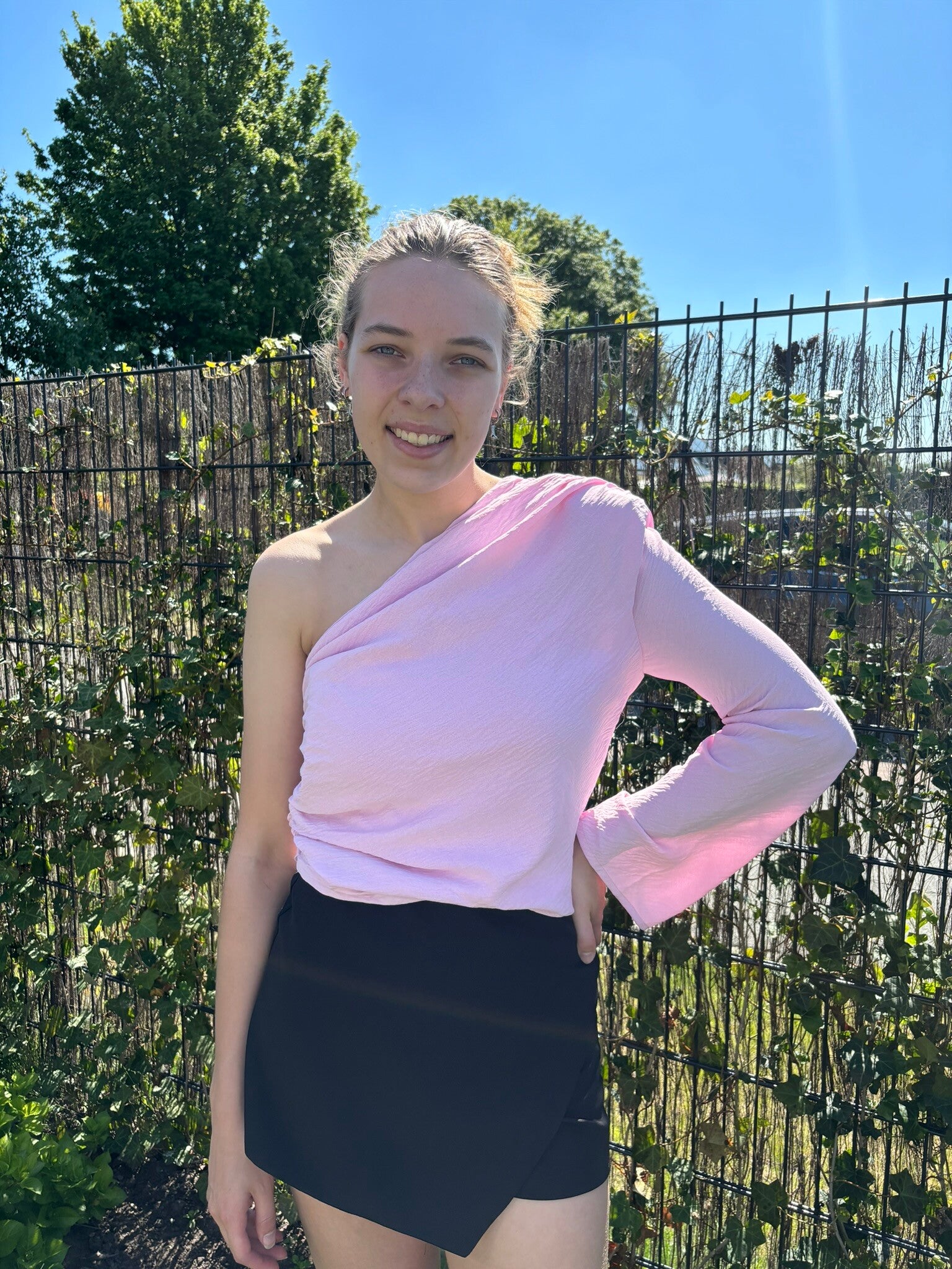 Deze roze one-shoulder top is erg leuk voor deze zomer!