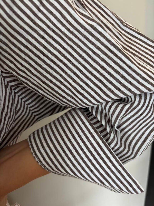 Deze streepjes blouse is te dragen tot een maat XL.