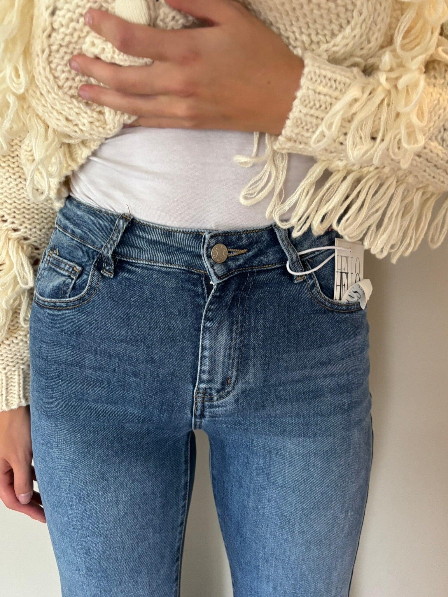 > Model draagt een 36/S van de jeans.