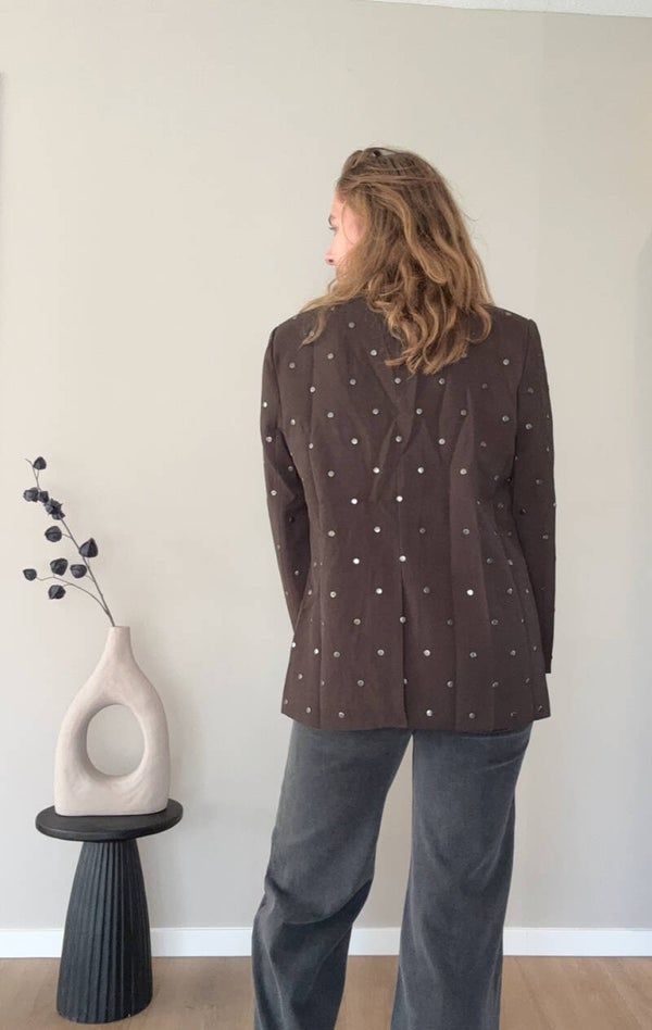> Model draagt van de blazer een maat M.